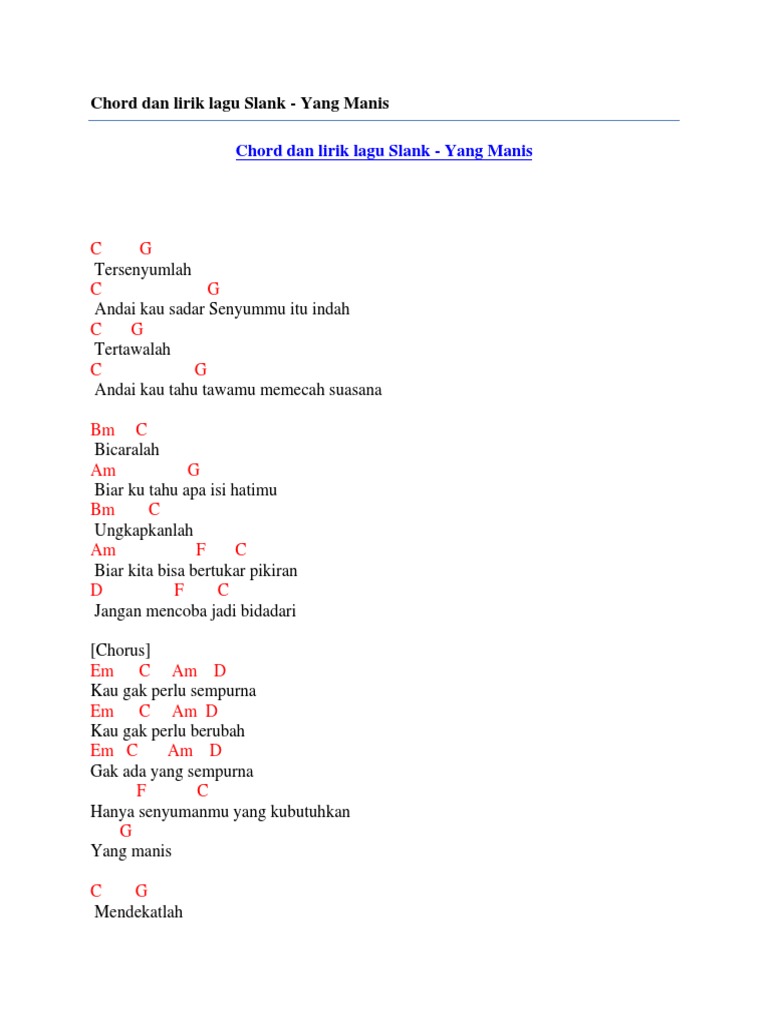 Am g malah cuma menambah f g c beban didalam hati. Sep 01, 2020 · lagu nggak perlu dimuat bersama 15 lagu lainnya melalui slank records dan program. F ya ya ya ya hu hu. More images for chord nggak perlu » Dm ya ya ya ya hu hu. Written by unknown tuesday, july 28, 2015. Lagu ini dimuat dalam album slank yang bertajuk lagi sedih. Berikut adalah lirik serta chord lagu nggak perlu dari slank: intro c g am f (2x) c g f waktu kau jauh.dariku c g f ku ingin engkau.di sini C g f c g f c. Am g f lebih baik kau jauh dariku am g kau akan menyesal waktu kau tau f g c siapa diriku. intro d a d bm g x4 verse 1 d a biarpun begitu banyak orang yang mengusik d bm g nggak perlu takut, nggak perlu gentar d a walaupun banyak orang yang mencoba menerka d bm g biarkan saja, jangan pikirkan interlude d a d bm g x2 verse 2 d a lakukan semua yang bisa kita. F dariku c ku ingin g engkau.